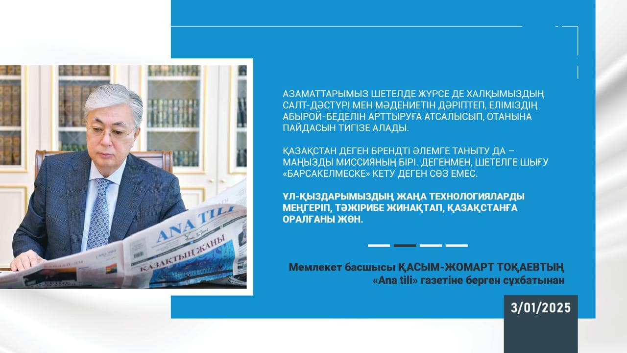 Касым-Жомарт Токаев: «Цель-укрепить экономику и суверенитет»Интервью главы государства газете «Ana tili»